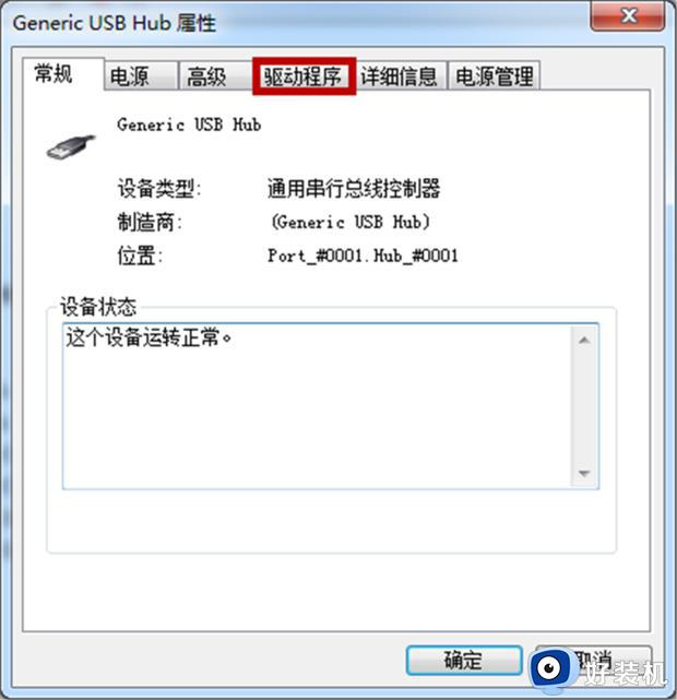 5.选择目标USB插口,双击打开菜单栏,点击切换至“驱动程序”选项卡;